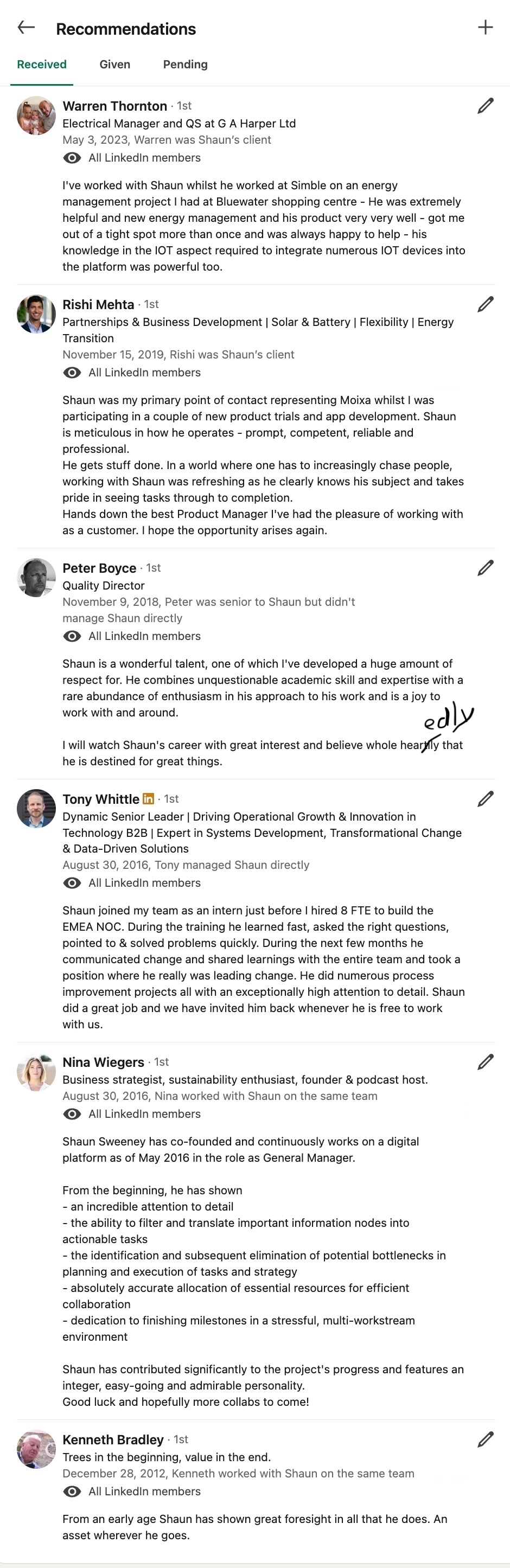 Screenshot of public LinkedIn recommendations. Click “Full screen” or “Open original” for maximum detail.